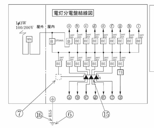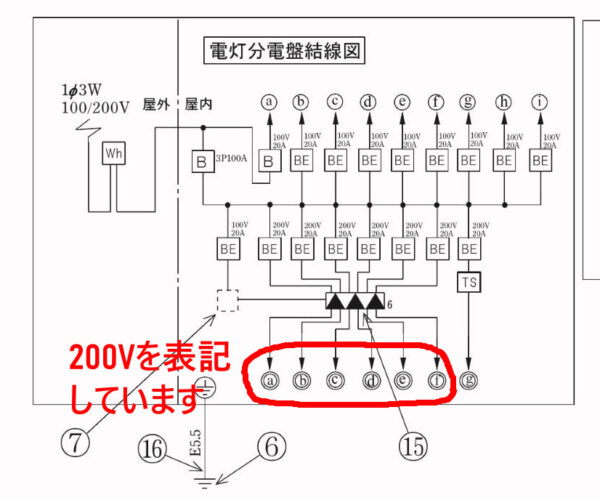 ⑮の部分にはリモコンリレーが使われているのが分かります。分電盤のこの部分で分かることは200vが使われていることです。