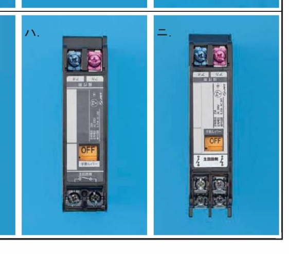 ブレーカーとしてもBEの部分が200vになっていますし,二重丸で記されたa~fも200vを表しています。では4択の写真に戻ってみますとハ・ニがリモコンリレーと言うことになりますが