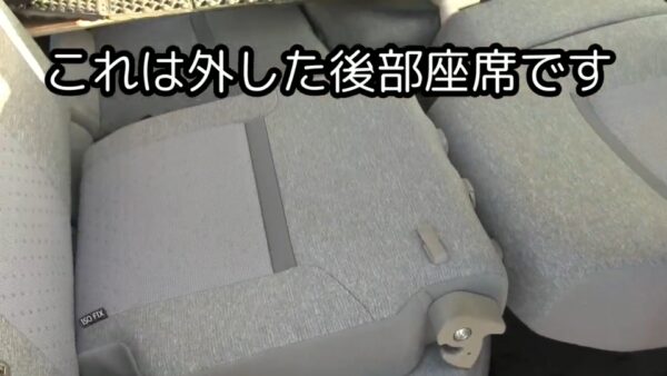 はずした後部座席を反対側にして座席部分にはめ込みます。そうすると運転席を倒した状態にすると概ねフラットになります。これではまだ違和感があるので銀マットを使用したり要らなくなったクッションなどを運転席の前の部分に入れ込みます。これだけで床がフラット状態になります。ただ身長が160センチ(170センチ)くらいでないと足が延ばせません