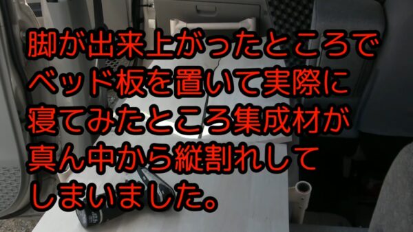 やっと架台とベッドの板が完成し、一度寝てみることにします。しかしながら問題が発生