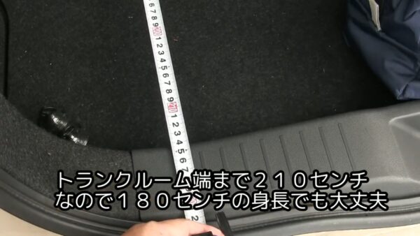 この状態で後部座席とトランク部分をまでを測ってみます。すると