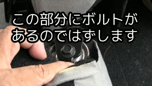 まずは後部座席のシートの背もたれ部分を外します。2代目のパッソは座る部分を引き出し背もたれ部分を倒すことによって後ろの部分はフラットになるのですが、3代目のパッソはそれができないためまずは座席の背もたれ部分を固定しているボルトをはずしていきます。