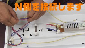 基本3:スイッチから出る線をパイロットランプと電灯に行く線に接続します